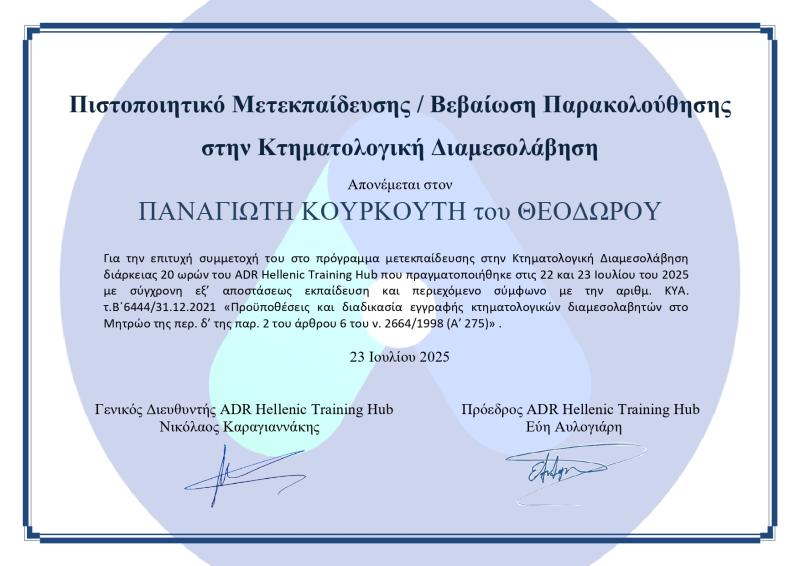 Διαπιστευμένος Διαμεσολαβητής του Υπουργείου Δικαιοσύνης (Α.Μ. 936)